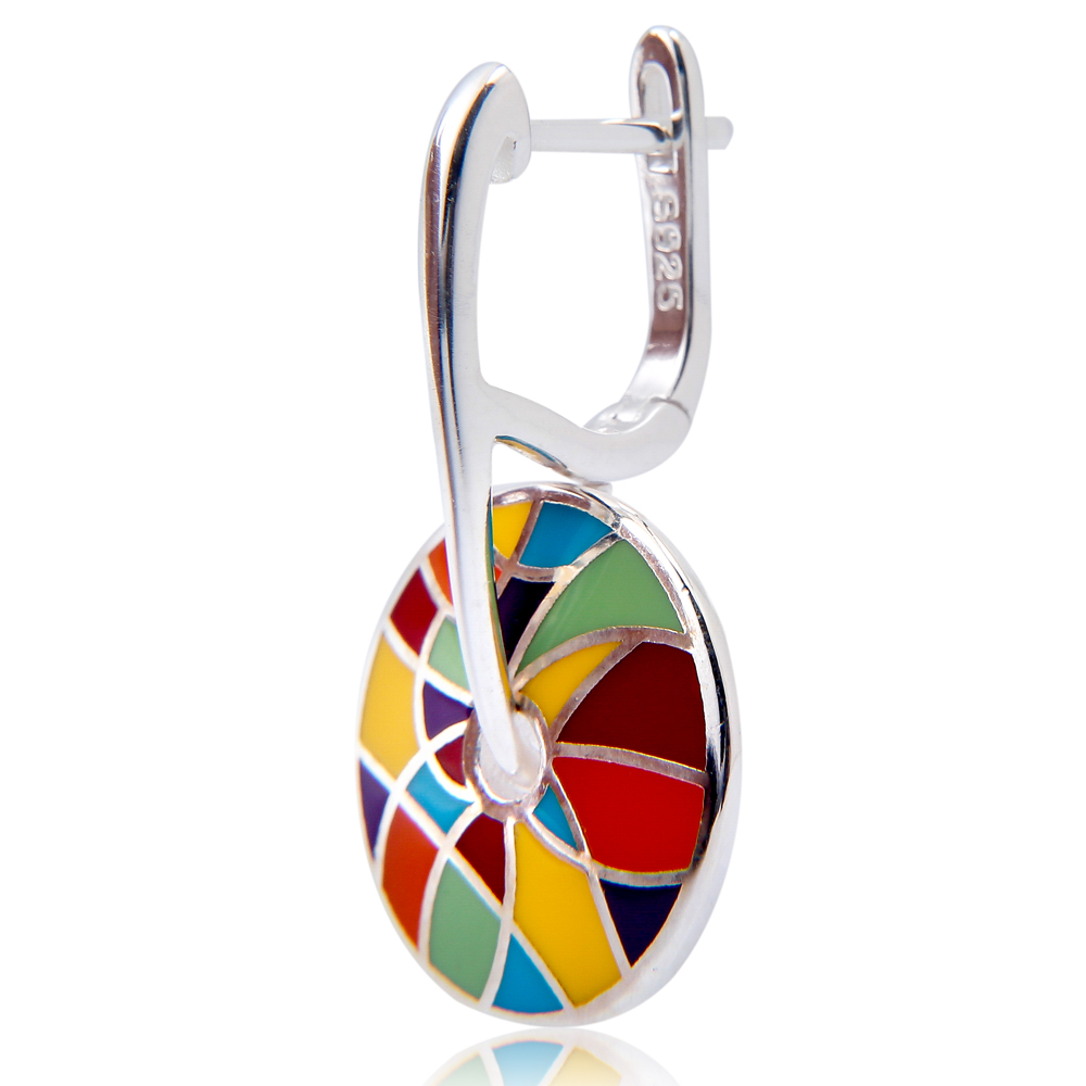 Colorful Enamel Sterling Silver Earring with geometry design.