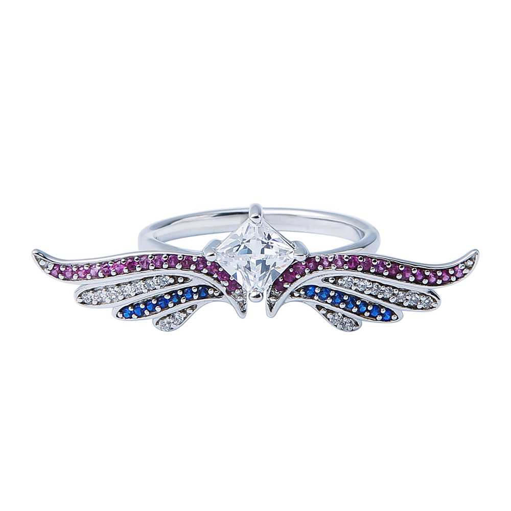 S925 Sterling silver is the main material of this jewelry ring. With three colours handmade AAA CZ zircon, it just like the wing of colorful dreams. More individuality and more chic.