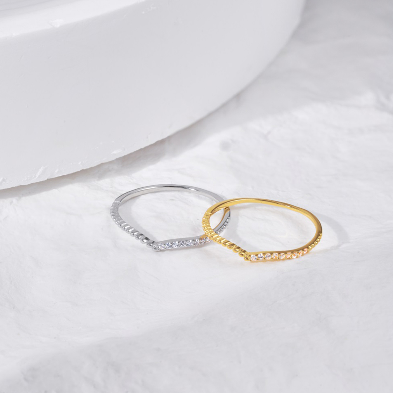 The v shaped silver ring is crafted in 925 sterling silver real 18K white/yellow gold plated with fine jewelry craft.