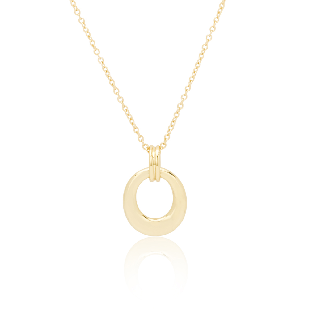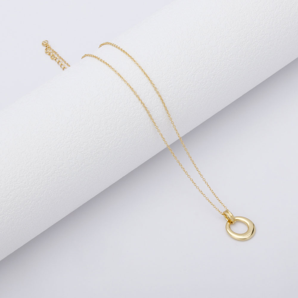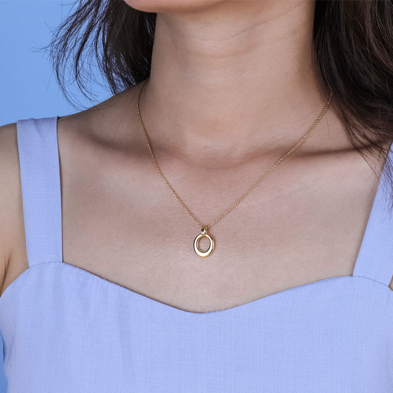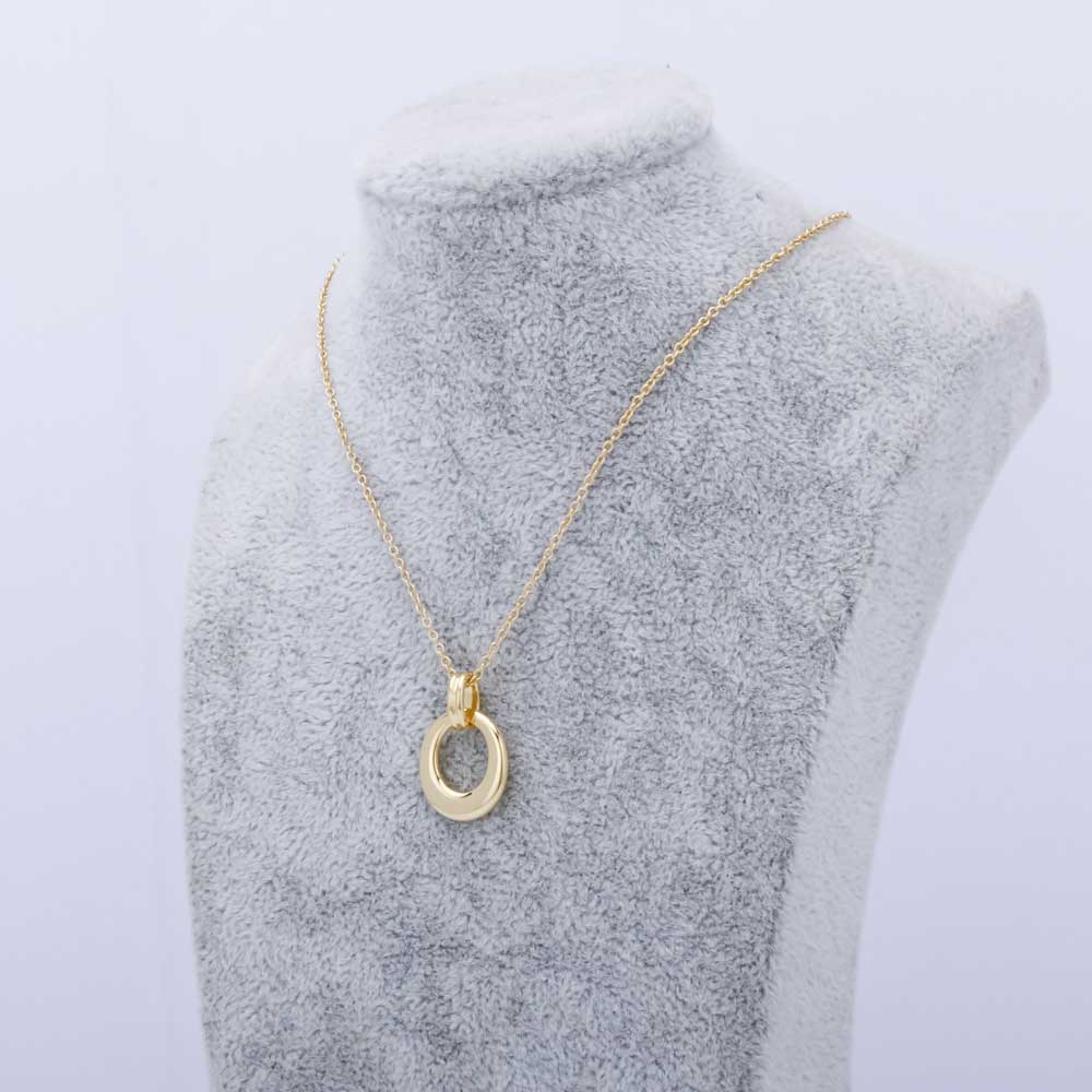 18K YellowVintage Hollow Geometric Oval Silver Pendant Necklace Gold Plated Women