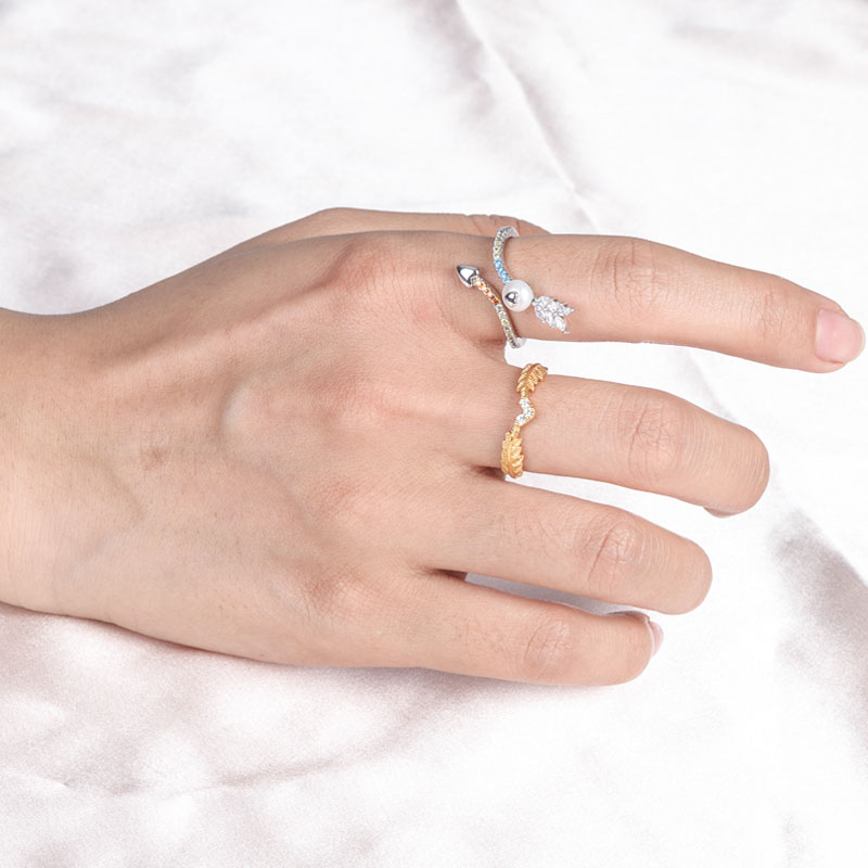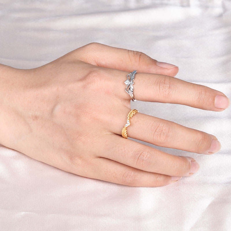 Ears of wheat symbolize wealth, prosperity, and abundance. In the middle is a heart headed by zircon, which is very cute. Choose this ring to express your best wishes to your loved one.