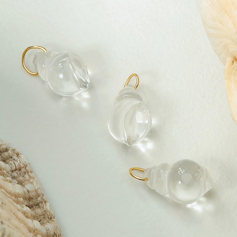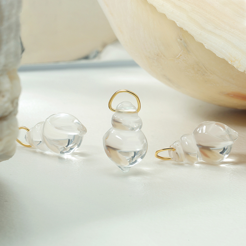 The White Crystal Conch Pendant is crafted in 925 sterling silver gold plated with fine jewelry craft.