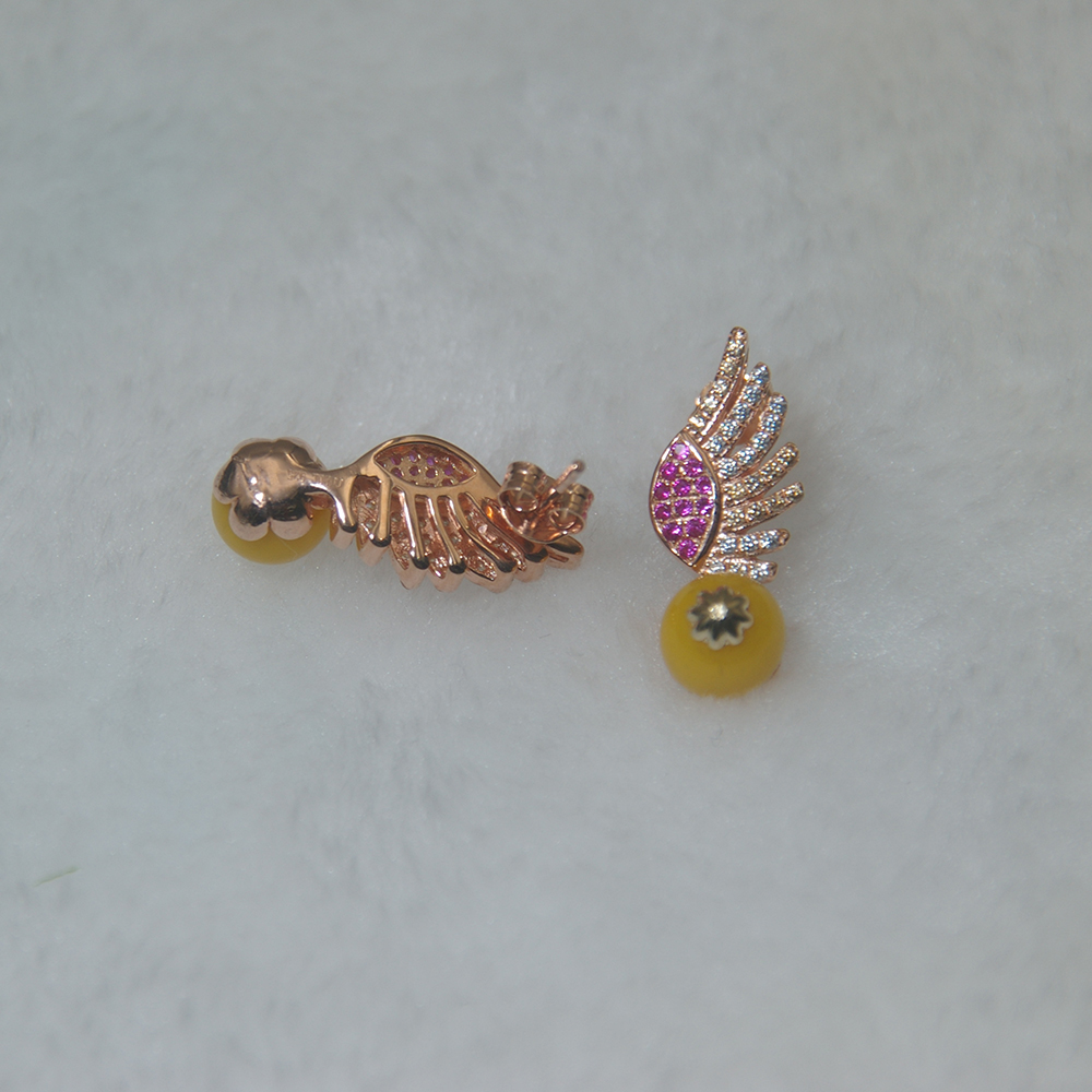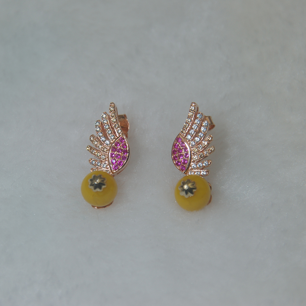 This feather design silver stud earrings is based on 18K rose gold plated. Main material is S925 sterling silver setting with AAA Cubic Zircon stone. The feather design is unusual and unique.