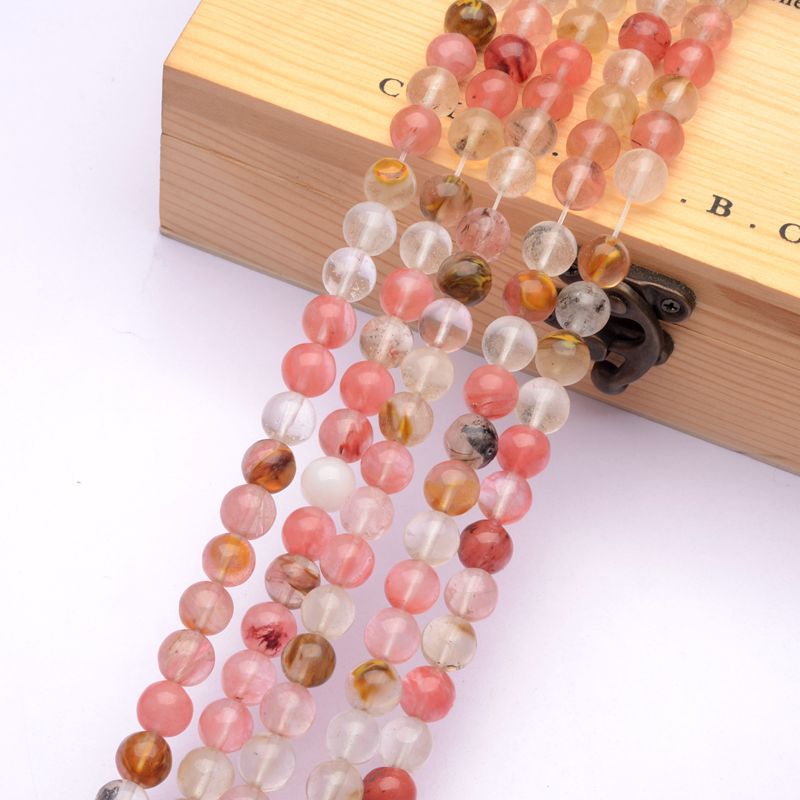 A women's bead jewelry is for jewelry making. The color is watermelon red. Material of the beads is crystal. You can use it to make different kinds of jewelry.