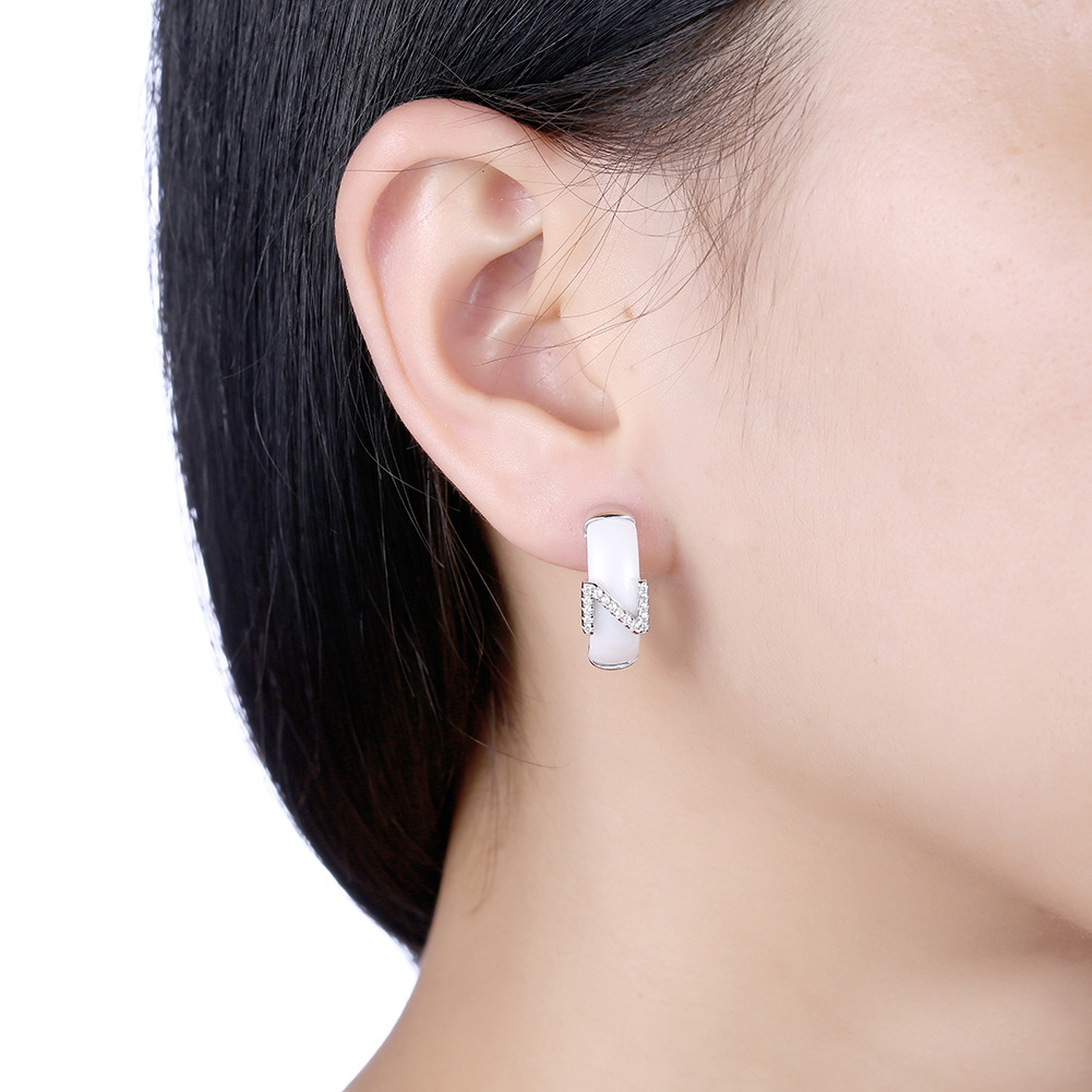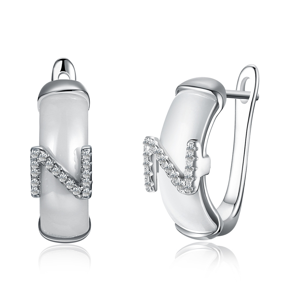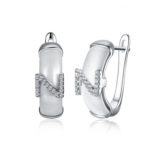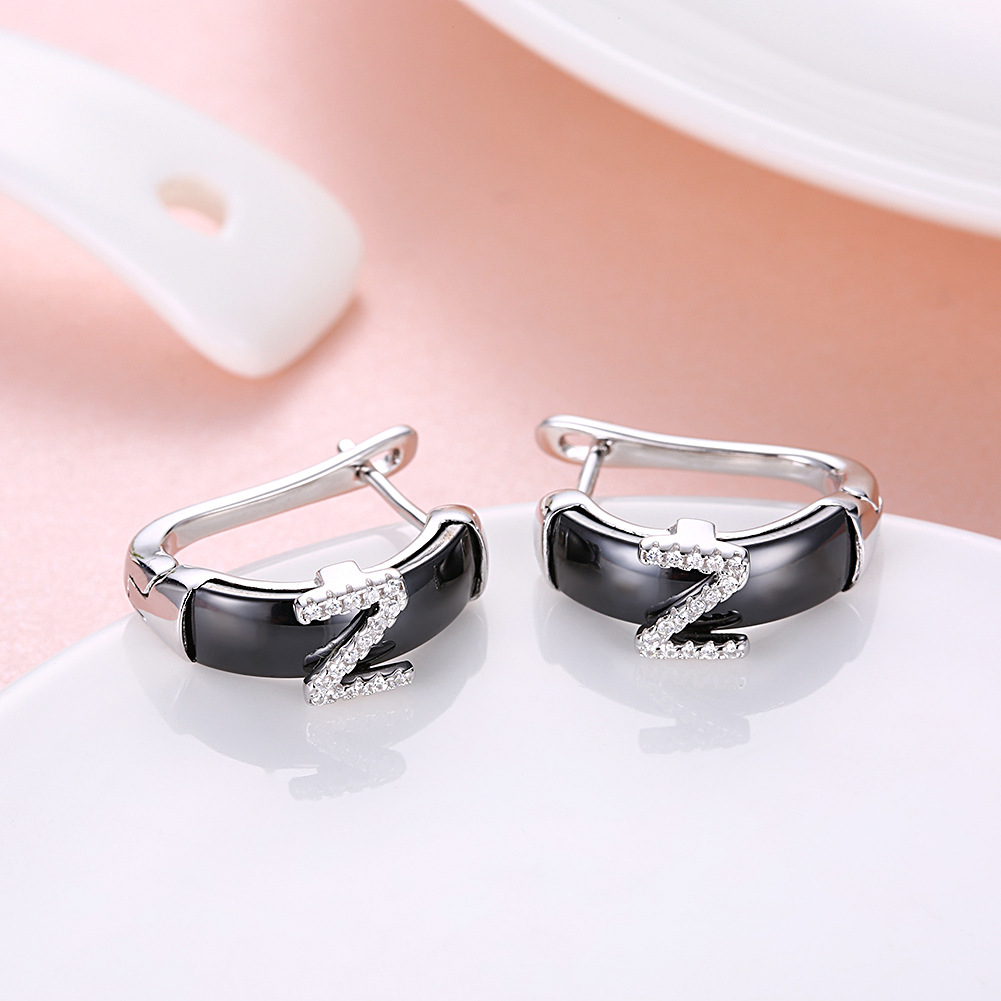 This clip on earrings is based on 18K white gold plated. It is special with ceramic material.Letter Z with pave setting CZ stones is on the ceramic.