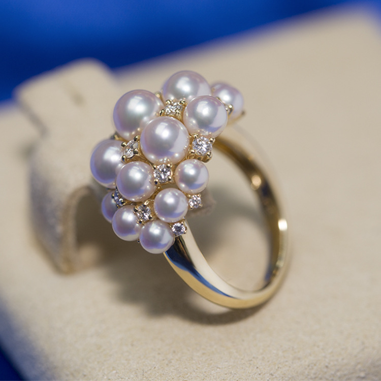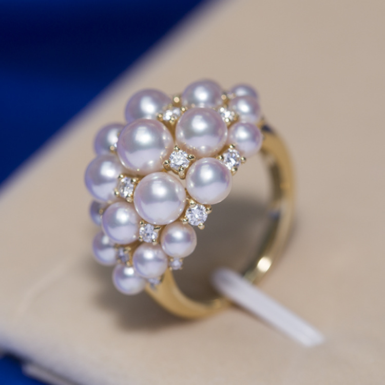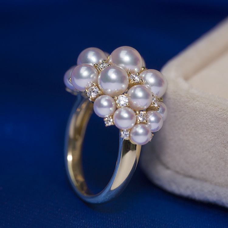 The Women Seawater Pearl Rings is made of 18K real gold and cluster setting with seawater pearl and diamond.