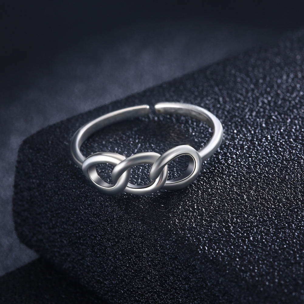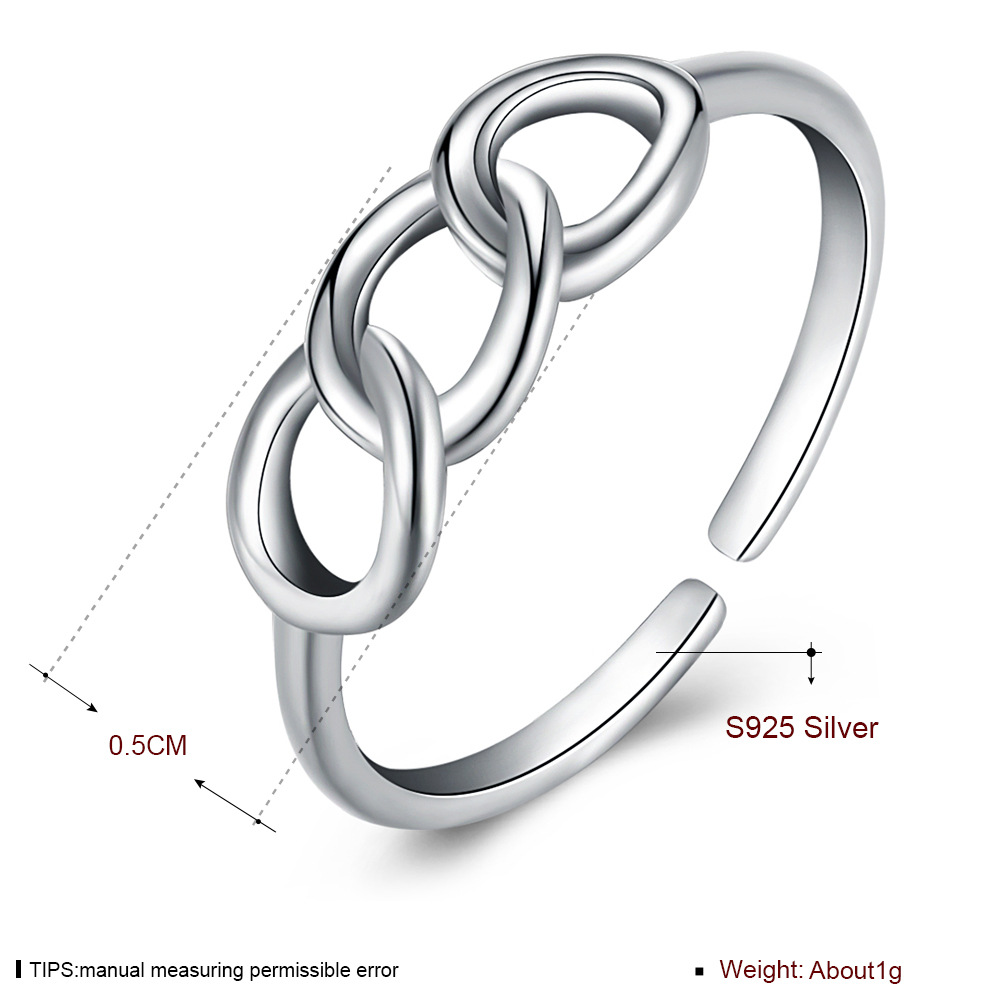 This S925 sterling silver adjustable ring is plated with 18K white gold and without gemstone setting, but