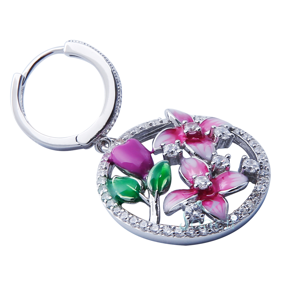 Women flower enamel sterling silver jewelry drop earring with exquisite enamel crafts AAA CZ stone. Enamel crafts makes the color outstanding and the flower design more exquisite and chic.