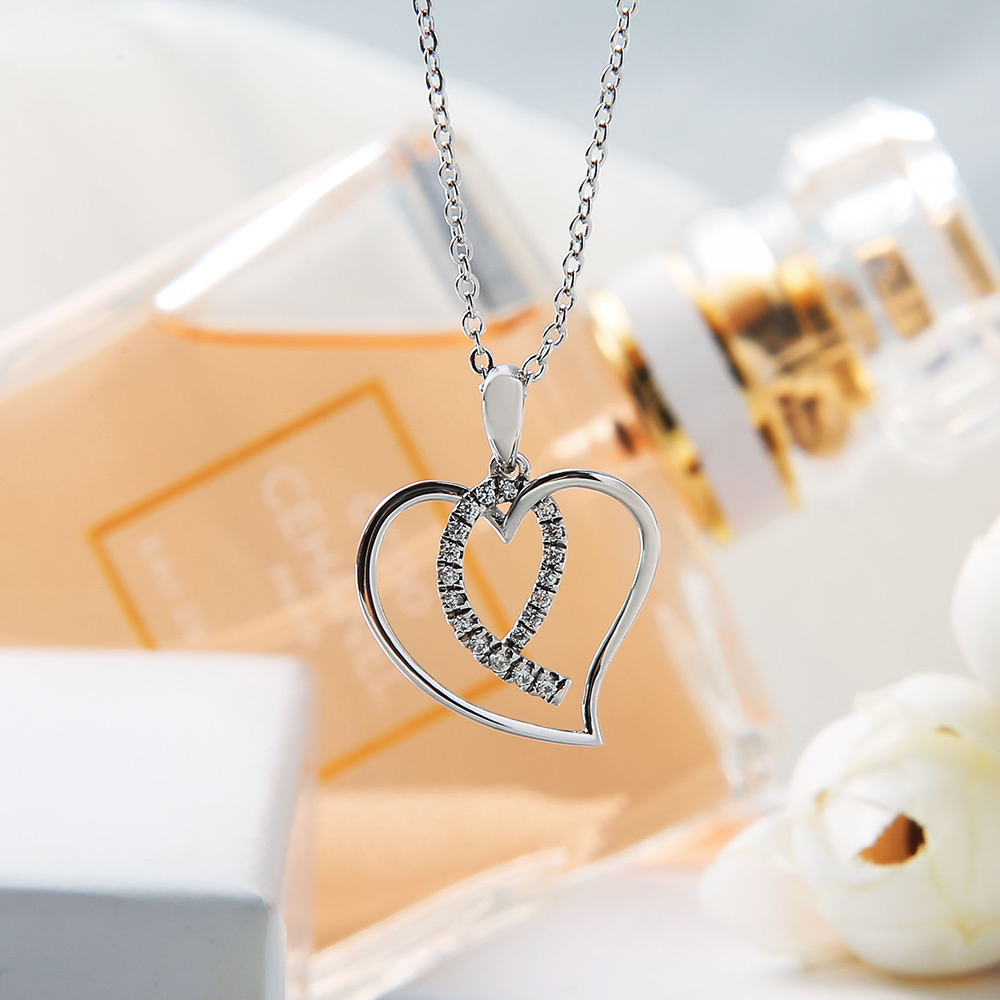 WhiteThis Love Heart pendant necklace paves set with beautiful cubic zirconia over the whole pendant, it is made of sterling silver and finally set with 2 blue stones for the eyes.