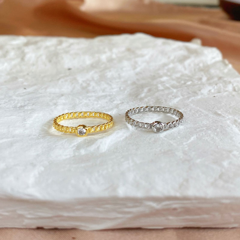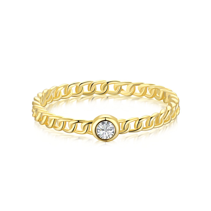 The Cuban link chain ring is crafted in 925 sterling silver 18k yellow/white gold plated, 5A zircon bezel set with fine jewelry craft.