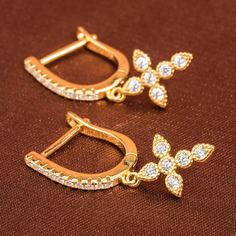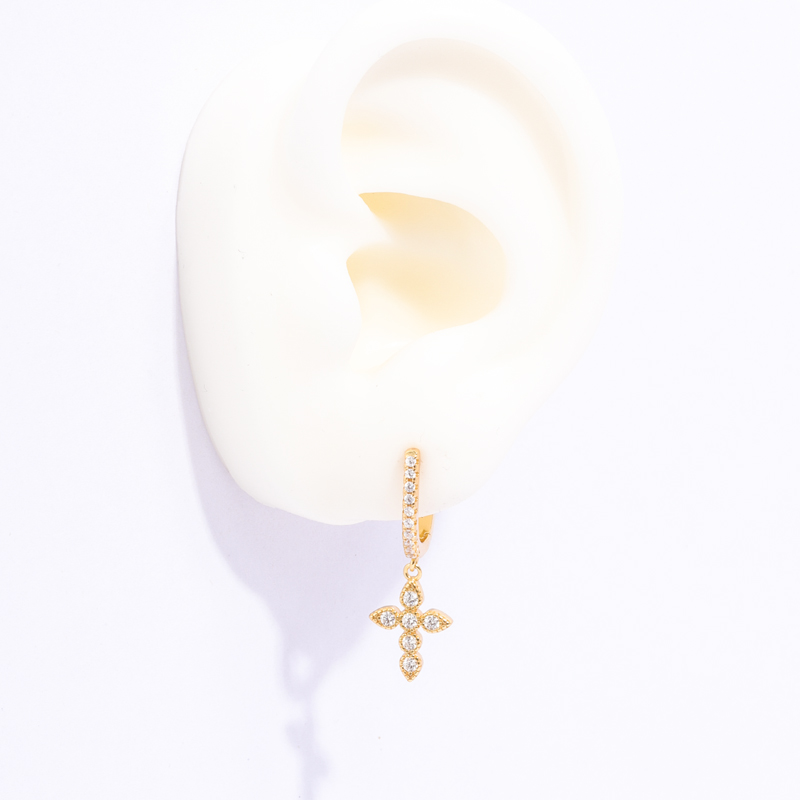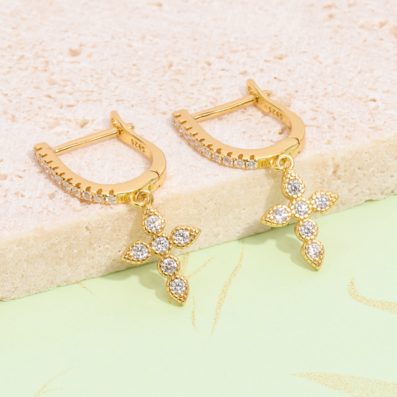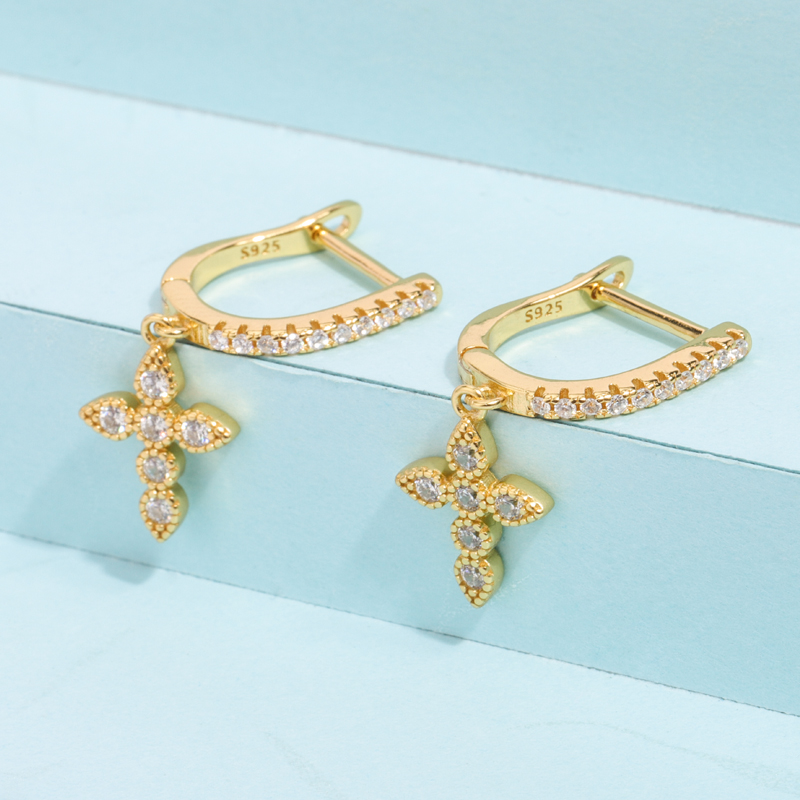 The huggie earrings with cross are crafted in 925 sterling silver 18k yellow gold plated with fine jewelry craft.